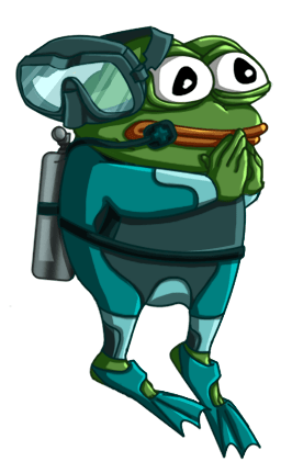 Pattern/color/prop: I like to do the “Susage :point_right: {username/ emote}” or something similar. Maybe something like the susage frog looking at a shark fin in the water and pointing. in the diving suit of course!