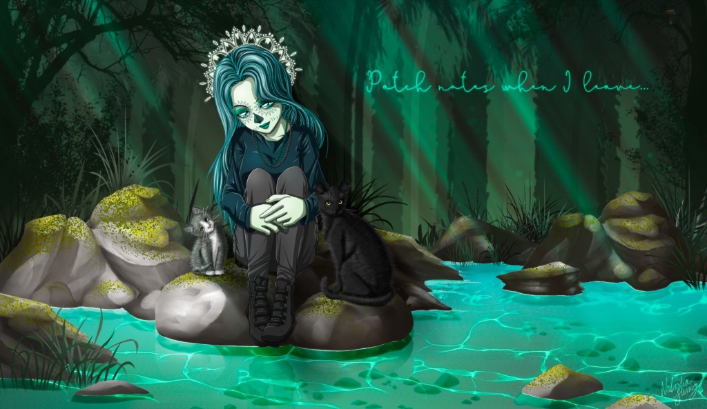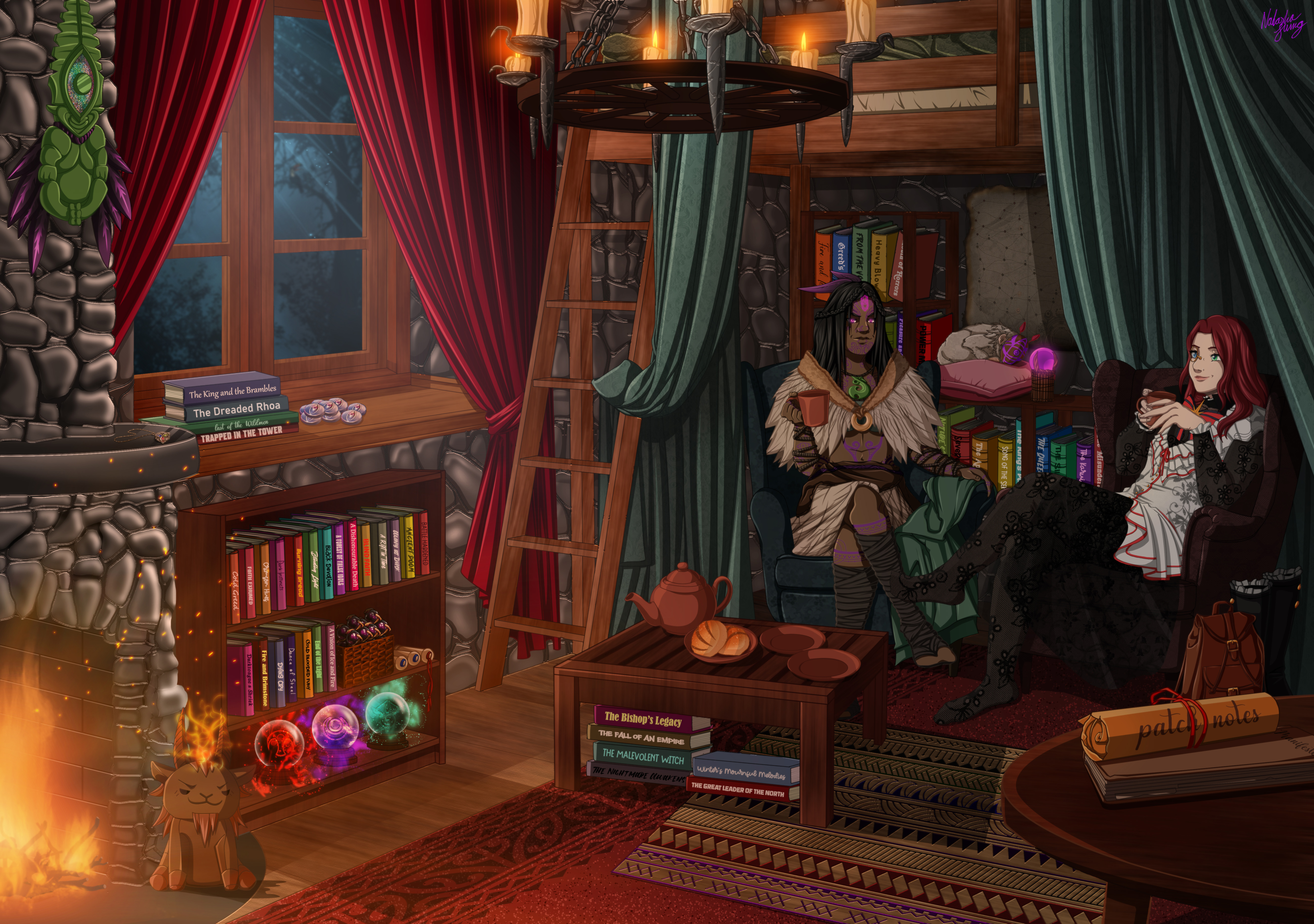 …could I have put in more details? Heck yeah, ALWAYS! But do I consider the artwork done? Yeah… yeah I believe so. It has everything I wanted to include: The community frogs, tons of little props to help tell stories, a LOT of references to the shenanigans chat gets up to and the games that we get together around.